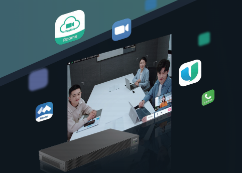 一 机 多 用,多 会 议 平 台 随 心 开,满 足 标 准SIP/H.323、腾讯会议、UME、亿联会议、YMS 2X、 Zoom Rooms等平台同时使用,告别会议平台使用限制,超能开会解决成本问题。支持设备模式,可作为电脑外设使用,满足更多会议平台的高品质音视频体验。