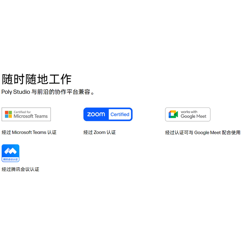使用内置云视频应用、Poly Video 应用或直接从电脑连接到几乎任何云视频服务。