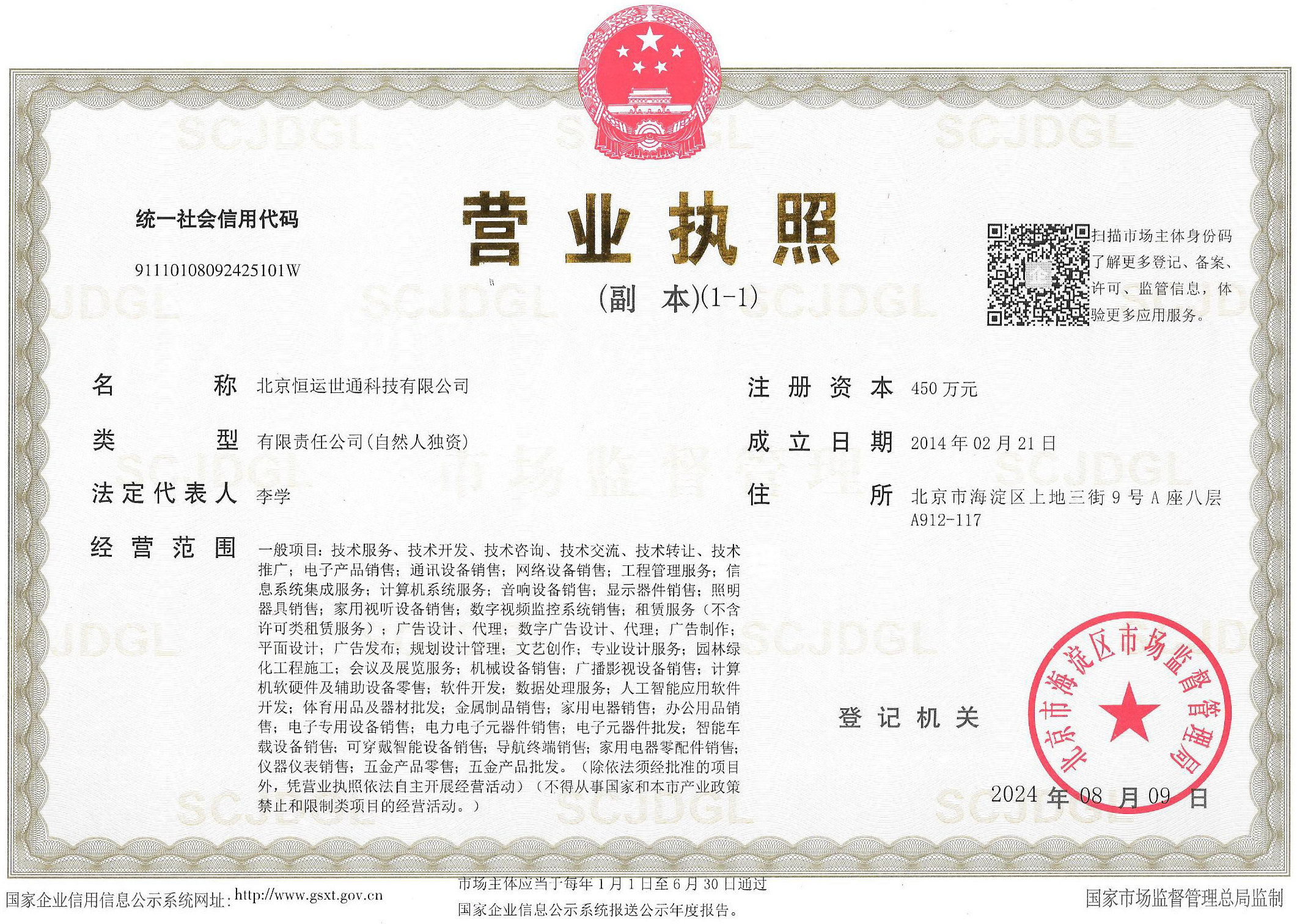 1、2014年2月21日|恒运世通成立 2、2016年POLY宝利通产品代理商 3、2018年Yealink亿联白金代理商 4、2019年国家级高新技术企业