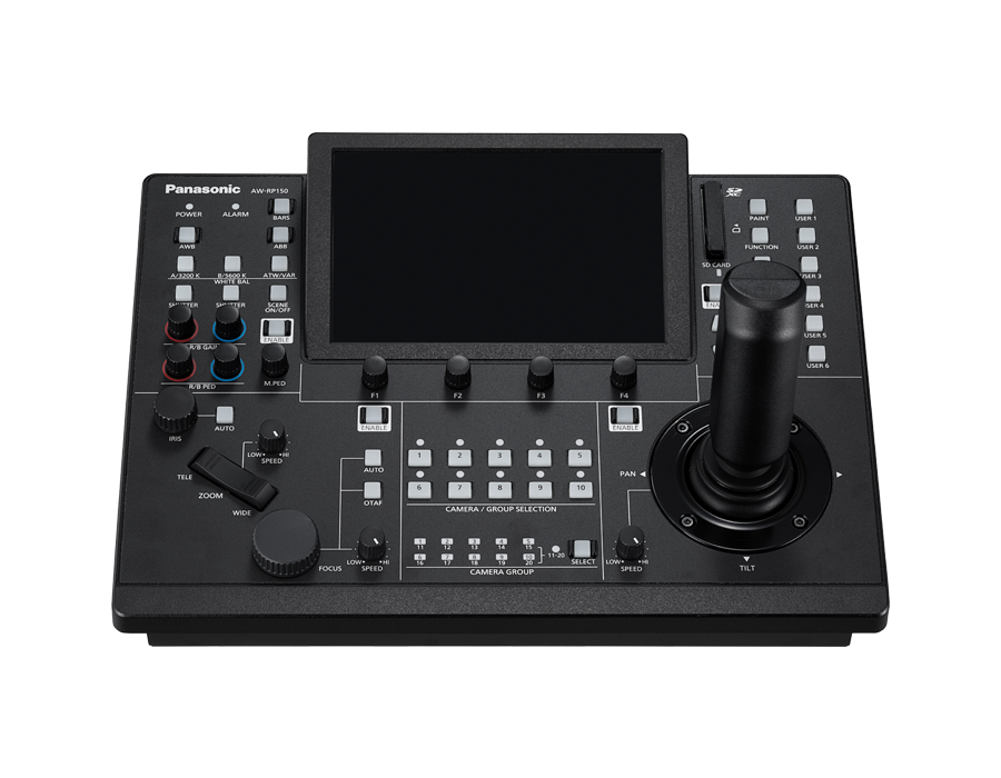 一体化摄像机遥控面板\n通过安装在操纵杆上的跷跷板杆进行水平垂直操控,以实现变焦和聚焦集中控制,而这一系列的操作单手即可完成。搭载7英寸触摸屏和图像监视器,可方便快捷地操控摄像机所有的基本功能。